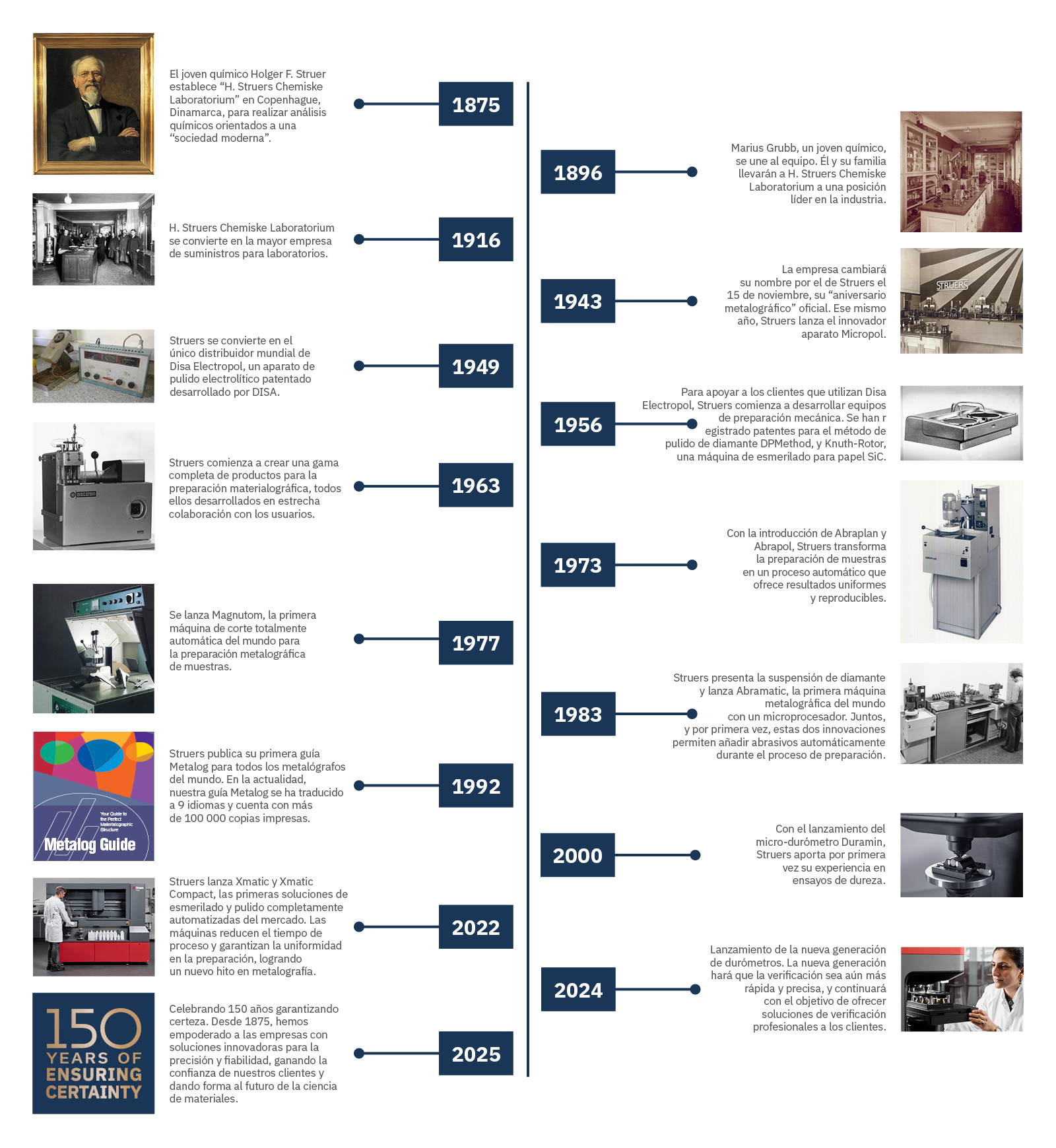 En 1875, Holger F. Struer fundó Struers cuando vio el potencial que ofrecían los análisis químicos para avanzar en investigación. Esa chispa de innovación es la que nos impulsa desde entonces. Llevamos 150 años garantizando certeza a nuestros clientes para que ayuden a industrias de todo el mundo a lograr precisión y progreso.
