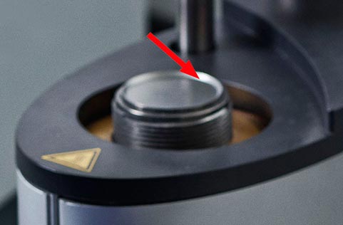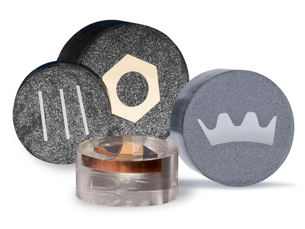 Un campione inglobato può presentare bordi taglienti che possono incidere le superfici di preparazione. Per ovviare a questo inconveniente, utilizzare un pistone inferiore con bordi smussati. Il pistone smussato evita anche che i campioni duri danneggino il cilindro d'inglobamento.