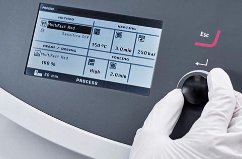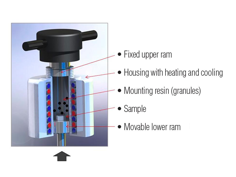 In caso di campioni porosi e/o sensibili alla pressione, come minerali o componenti elettronici, può essere utile ammorbidire la resina riscaldandola prima di pressarla. Il preriscaldamento è utile anche quando si utilizzano resine termoplastiche.